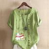 Damenmode Katzen und Kaninchen bedrucktes Rundhals Kurzarm T-Shirt Lässig Baumwolle Leinen Grafik Shirt Freizeit Locker Sommer Bluse Tops