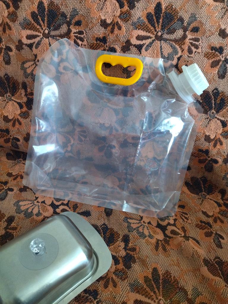 Es ist etwas klein und es ist nicht klar, was mit dem Trichter gemeint ist. Nichts, außer diesem Beutel mit Henkel und Hals mit Deckel... na ja, ich habe meinen eigenen, aber ohne Trichter kann man das nicht hineinschütten. Okay, wenn es stark ist und länger hält.