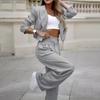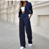 Damenmode Lässig Gestreifter Anzug mit kurzem Revers Gerades Hosen-Set