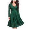 Modisches, einfarbiges Damenkleid mit V-Ausschnitt, langen Ärmeln, schmaler Spitze und knielangem Kleid