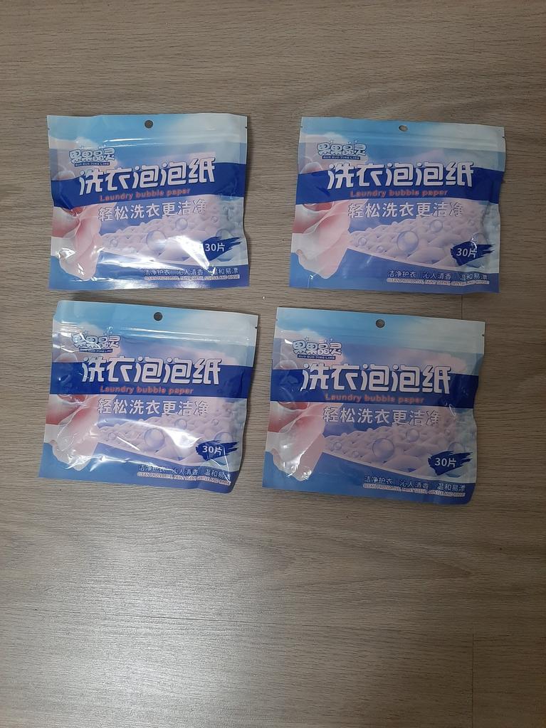 Ich habe 180 Blatt Waschpulver bestellt, 6 Packungen à 30 Stück. Aber es kamen 4 Packungen à 30 Stück. Das sind 120 Stück. Und ich habe nicht sofort gemerkt, dass zwei Packungen fehlen. Ich habe von allem eine Auspackung auf Video gemacht, und gerade bei diesen Blättern dachte ich, ich würde sie hier vorstellen. Aber nein, sie haben mich betrogen. Die Blätter gefallen mir sehr, sie sind bequem zu benutzen und aufzubewahren. Ich gebe 2 Blätter in die Waschmaschine pro Waschgang. Man kann auch von Hand waschen, 1 Blatt pro Waschbecken, löst sich sofort auf.
