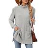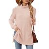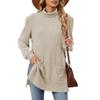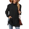 Herbst Damen Bluse Halb Stehkragen Langarm Lose Split Pocket Top