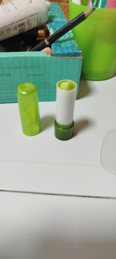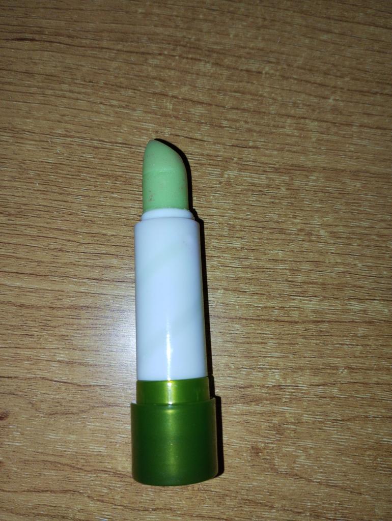 Schöner Lippenstift. Gut für die Reifen. Die grüne Farbe auf den Lippen wird zu einem dunklen Rosa. Es hat ein subtiles Aroma. Aloe. Mir hat es gefallen.