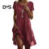 Merkmale: Das Damenkleid hat einen Punktdruck, einen O-Ausschnitt, kurze Ärmel, eine A-Linie, einen lockeren Schnitt, einen großen Saum, einen ethnischen Stil und weiche Stoffdesigns, die Sie fabelhaft und schick aussehen lassen.