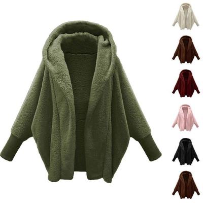 Damenmode, lockerer Vintage-Mantel, warm, einfarbig, langärmelig, mit Kapuze, lockerer Plüschmantel
