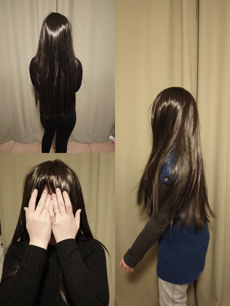 Kam furchtbar umständlich an, alles verheddert, bereits mit Spülung getränkt, einen Lockenstab benutzt, 100 Jahre lang gekämmt. Und die Perücke war schlecht verpackt.