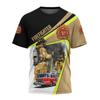 T-Shirt mit Muster für Herren, Feuerwehrmann-Grafik, 3D-Druck, übergroßes T-Shirt mit O-Ausschnitt, modisch, lässig, atmungsaktiv, kurzärmelig