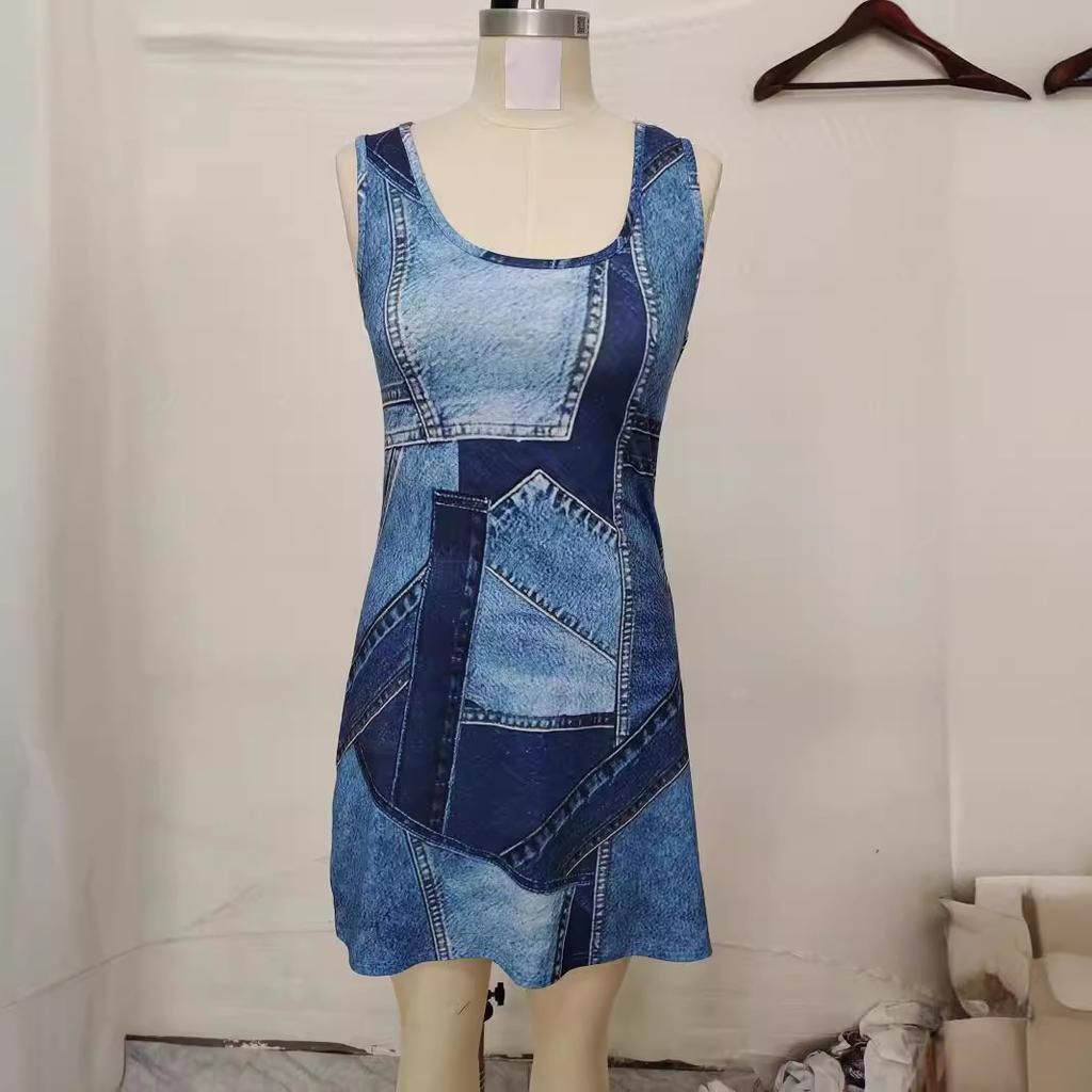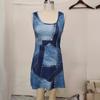 GMXIA Frühling Sommer Damenmode Denim Print Damen Kleid Frauen