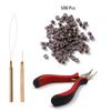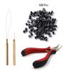 Haarverlängerungs-Set Zange Ziehhaken Perlenvorrichtung Werkzeug-Sets und 500 Stück silikonbeschichtete Mikroringe für Baton-Haarverlängerungen