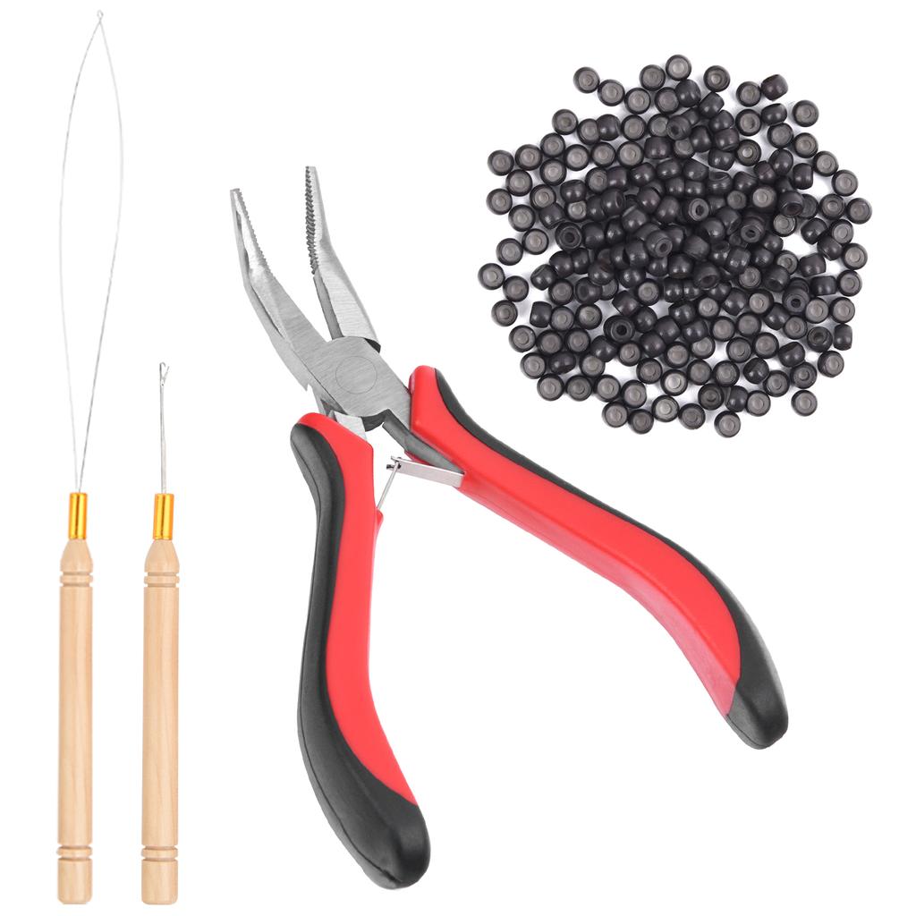Haarverlängerungs-Werkzeugset Zange & Ziehnadel & Ringnadel & 200 Stück Nano-Silikonringe Ein Set für Frisuren