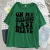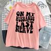 On My Husbands Last Nerve T-Shirt Damen Baumwolle Lässig Atmungsaktiv T-Shirt Fashion Street Kurzarm Übergroßes Weiches T-Shirt