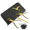 Haarverlängerungs-Zangen-Set, Werkzeuge, Anwendungsöffner-Zange + Ziehnadel + Clips + 5030 mm gefütterte Mikroperlen schwarz