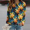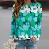 Herbst Herbst Damenmode O Hals Langarm T-Shirt lose Kleidung grüne Blumen Druck T-Shirt für Mädchen Straße