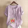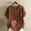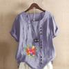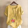 Damen Neues Mode Leinenhemd Rundhals Kurzarm Blumenstrauß Gedrucktes T-Shirt Sommer Damen Lässige Bluse Oberteile