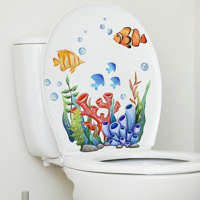Toilettensticker, Wasserpflanzen, Fischmuster, Toilettenaufkleber, selbstklebende Toilettendeckelaufkleber