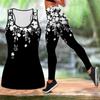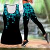 Blaues Yoga-Outfit mit elegantem Blumendruck für Damen, modische Workout-Leggings, Fitness, Sport, lässiges Yoga-Set, Sportanzug