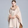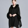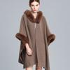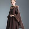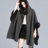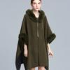 Herbst und Winter Imitation Rex Kaninchen Pelzkragen Kapuzenschal Damen Großer Wollmantel Mantel Lose Strickjacke Damen