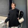 Damen Frühling und Herbst Rundhals Lose Pullover Kleine Leute Langarm Einfarbig Tops