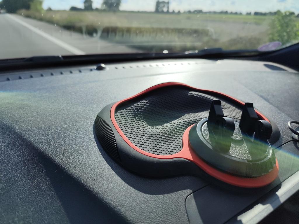 Auch wenn nicht super elegant, dieses Produkt macht seinen Job. Zumindest die ersten anderthalb Monate... Denn so gut er in dieser Zeit auf dem Armaturenbrett hält - selbst in etwas zu schnell genommenen Kreisverkehren und selbst mit einem darin eingebauten Telefon -, so sehr wirbelt er nach dieser Zeit bei der kleinsten Kurve in Ihren Füßen herum (oder fliegt sogar durch das offene Fenster hinaus!!). Dar mehr noch, wenn die Sonne stark genug scheint, schmilzt und verzieht sich das Plastik (siehe Foto); das ist irreparabel. Meiner ist nach nur zweieinhalb Monaten reif für den Müll.. Ich empfehle dieses Produkt nicht.