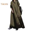 Frühling Herbst Damen Kleid Vintage Ethno-Stil Locker A-Linie Großer Saum Umlegekragen Knöchellang Lange Ärmel Lady Maxikleid