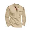 Stil: Entscheiden Sie sich für einen klassischen und doch stilvollen Look mit diesem einfarbigen Herrenoberteil mit Stehkragen, Halbknopfverschluss und trendigem Langarm-Patchwork-Design.