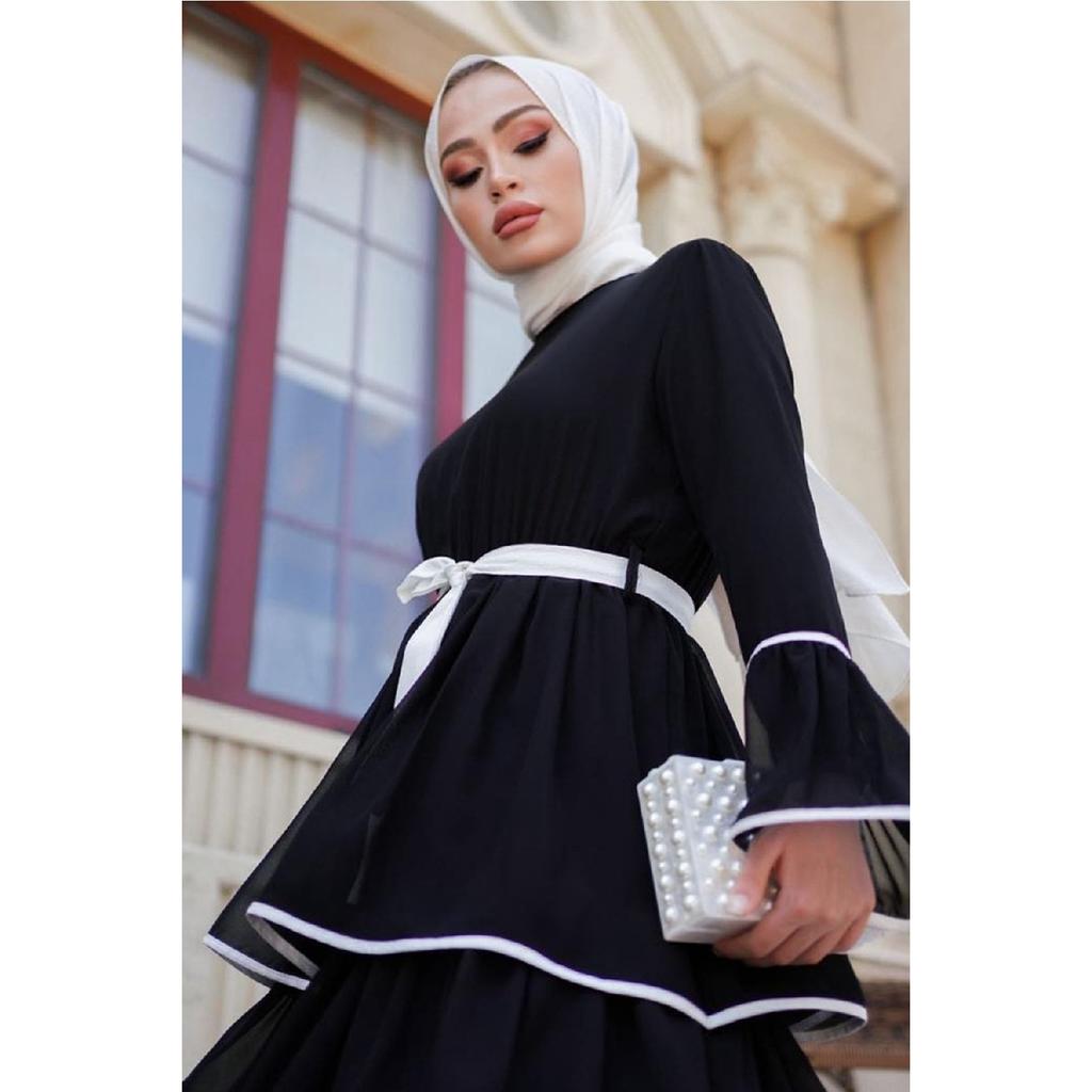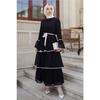 Mehrlagiges, langes Chiffonkleid mit Gürtel 155 – Schwarz