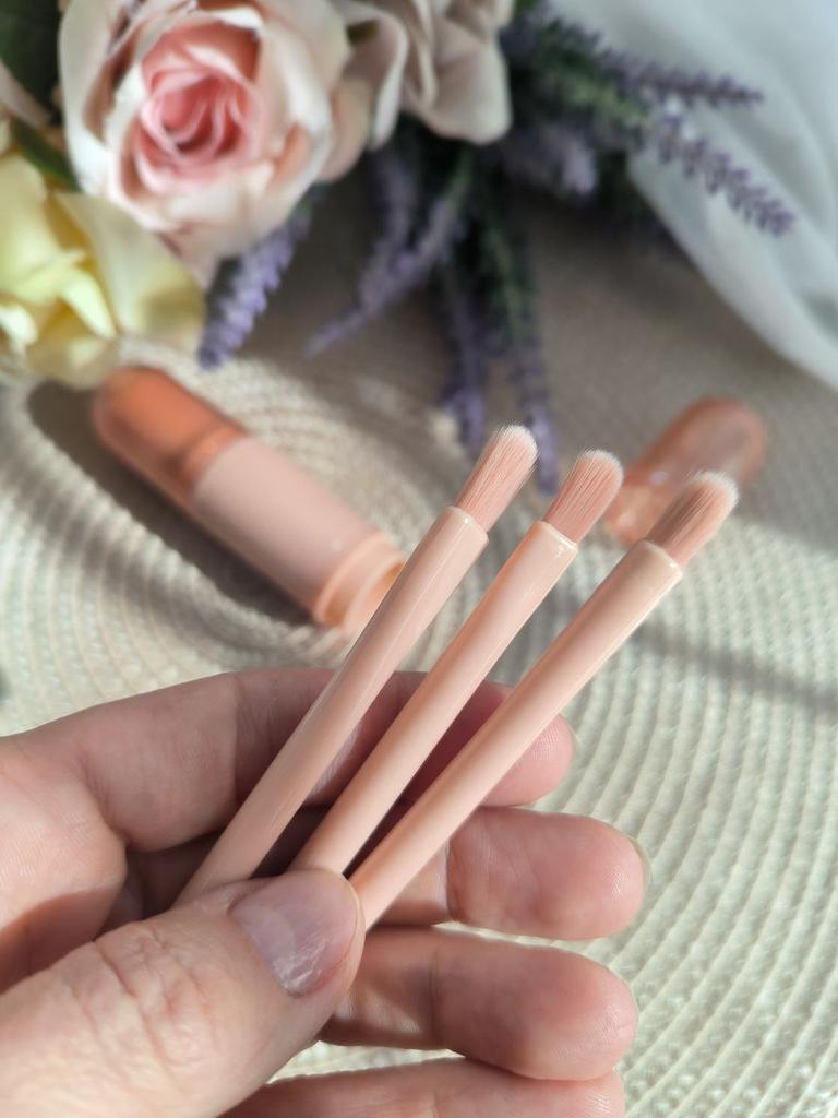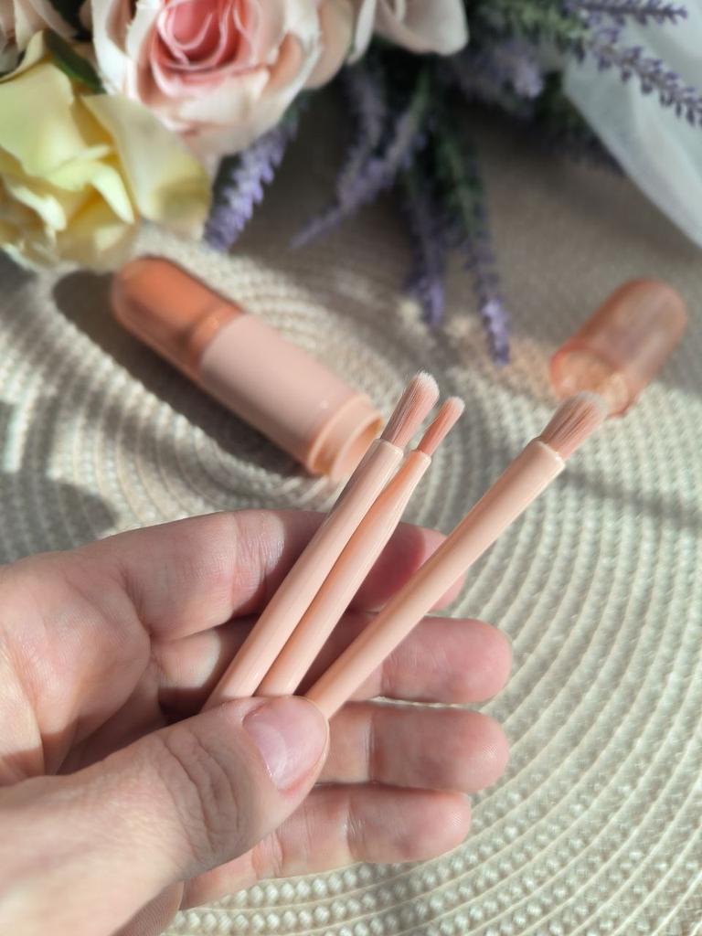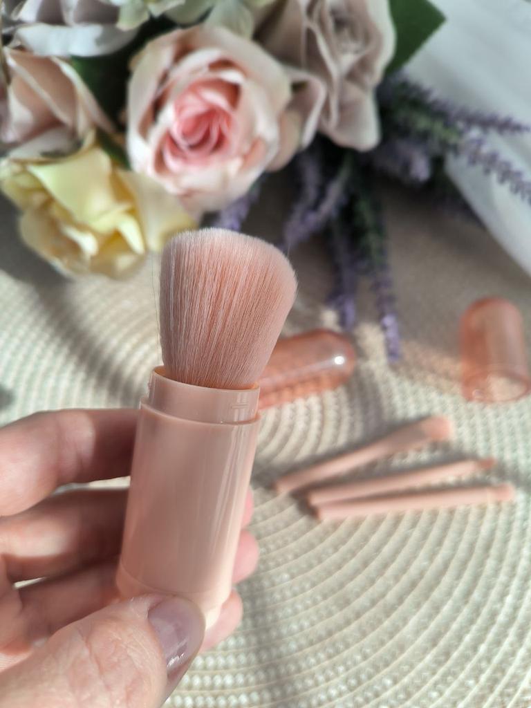 Ein schickes Pinselset in einem praktischen röhrenförmigen Etui. Das Kit enthält die notwendigsten Pinselformen, die beim Auftragen von Make-up verwendet werden. Der Stapel ist dicht gepackt, ragt nicht hervor und liegt angenehm auf dem Code. Es eignet sich hervorragend zum Auftragen jeglicher Kosmetikprodukte auf die Gesichtshaut und lässt sich bei Bedarf perfekt verblenden. Mädchenhafte Farbe – Rosa 💕 doppelseitige Tube mit Öffnungskappen. Ich trage dieses kompakte Set in meiner Handtasche und es eignet sich auch hervorragend als Geschenk für Freundinnen.