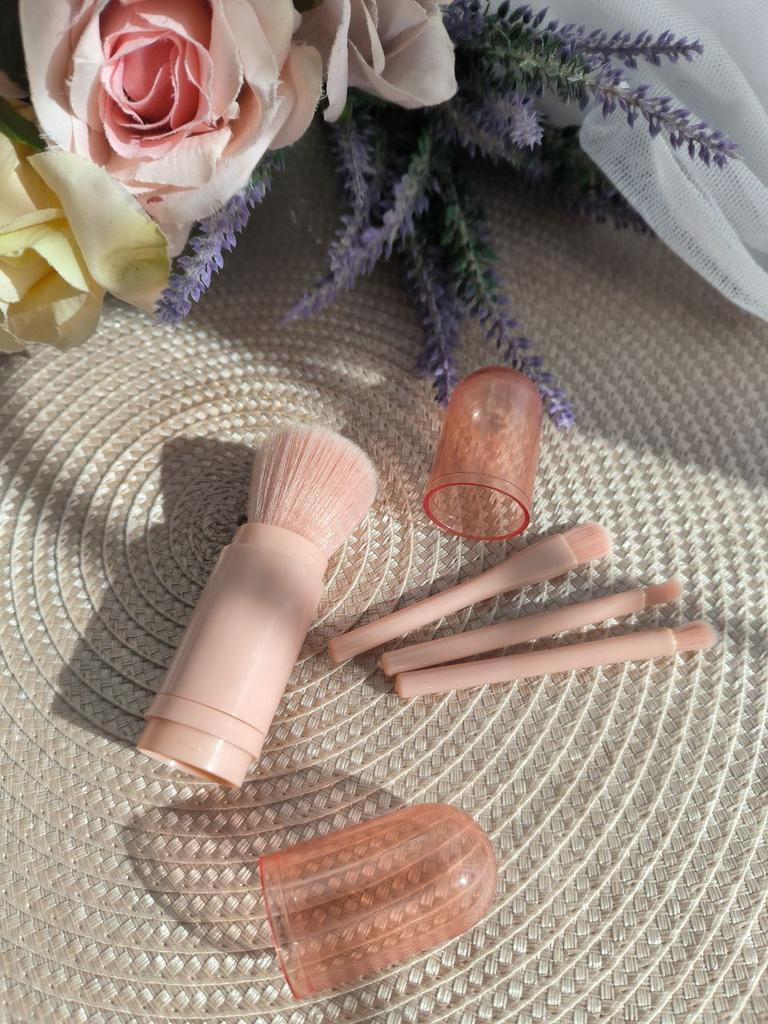 4-in-1-Reise-Make-up-Pinsel-Set, einziehbarer Pinsel und 3 kleine Pinsel für die Augen, weich, klein, tragbar zum Ausbessern