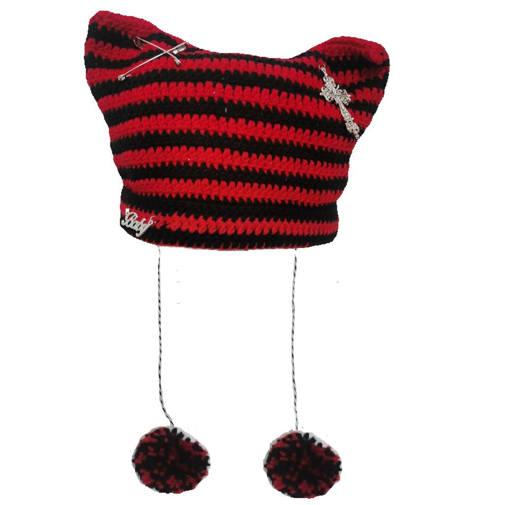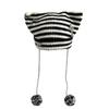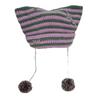 Teufelsgestreifte Strickmütze mit süßen Katzenohren und Kreuzverzierung für Frauen und Mädchen(54-56cm)