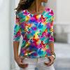 Damen Herbst Tops Loose Blau Schöner Schmetterlingsdruck Kausal Langarm T-Shirt Top Bluse