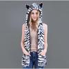 Herren/Damen Kunstpelz Kapuze Tiermütze Ohrenklappen Handschuhe 3in1 Tierfellmütze Wolf Plüsch Warme Kunstpelzmütze Mütze mit Schal Handschuhe