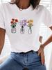 Mode Frauen Skelett und Pflanze Print T Shirt lustige lässig O-Ausschnitt kurze Ärmel T-Shirt Sommer weibliche T-Shirt