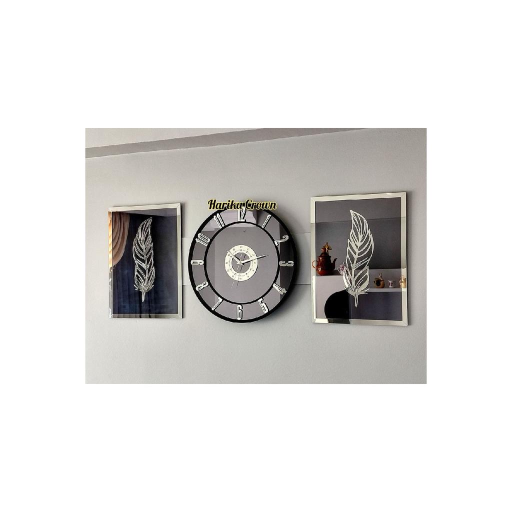 Verspiegeltes Modell 2 Federgemälde und Uhr-Set 40
