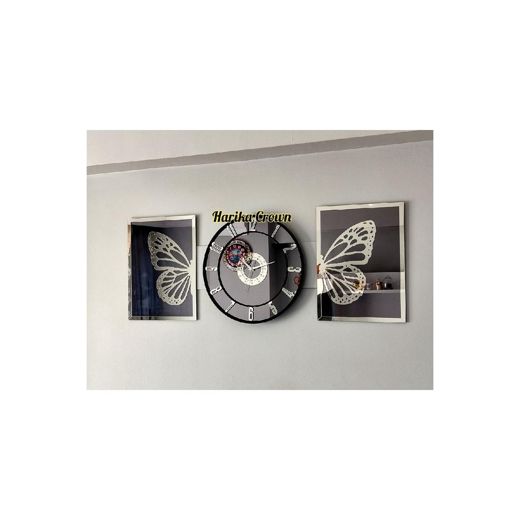 Mirrored Model 2 Butterfly Painting And Clock Set 40