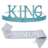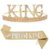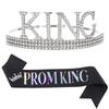 Herren Krone Glitzer Zeremoniengürtel Set Herren PROM KÖNIG Krone Kopfschmuck Abschlussball Party Geschenk