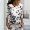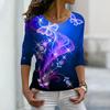 Damen Herbst Tops Loose Blue Dreamy Butterfly Print Kausal Langarm T-Shirt Top Bluse