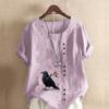 Damenmode Rundhals Kurzarm T-Shirt Lässiges Baumwollleinen Grafikhemd Freizeit Lose Krähenprint Sommer Bluse Tops