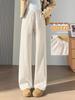 High Waist Weite Hosen für Damen im Herbst und Winter, Hoher Bund und schlaffes Gefühl, Lockere gerade Hosen, Bodenlang Plus Flan