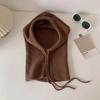 Wintermütze aus massivem Strick für Damen, Sturmhaube, Strickmütze, Totenkopfmütze mit Kordelzug, warmer Schal mit Kapuze, weiche, bequeme, lässige Modemütze