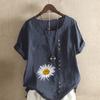 Damenmode Rundhals Kurzarm T-Shirt Lässiges Baumwollleinen Grafikhemd Freizeit Lose Blumendruck Sommer Bluse Tops