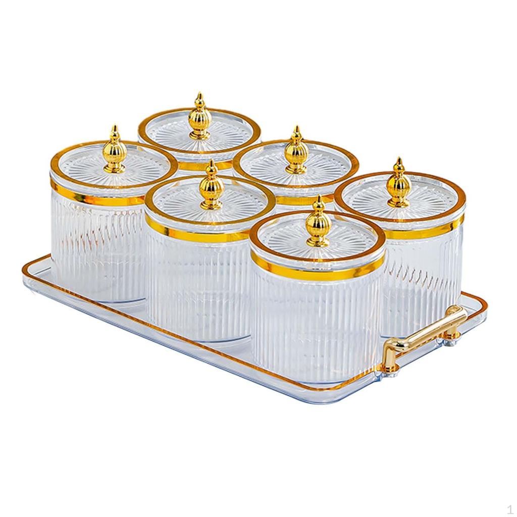 - 【Tragbar】: Bonbon-/Nussschale mit Deckel, die Lebensmittel oder Gewürze im Behälter wirksam verschließt, staubdicht, mit Tablett, leicht zu bewegen.