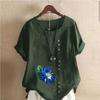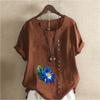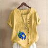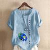 Damenmode Rundhals Kurzarm T-Shirt Lässiges Baumwollleinen Grafikhemd Freizeit Lose Blumendruck Sommer Bluse Tops