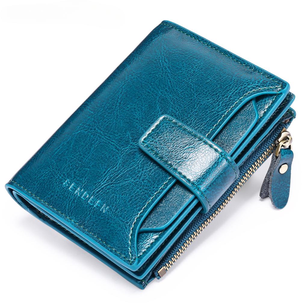 Lässige Damen-Geldbörse aus echtem Leder, Blockierung, kurz, multifunktional, große Kapazität, Reißverschluss, Münzbörse, Geldklammer