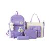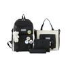 Das Set beinhaltet einen Rucksack, eine Umhängetasche, eine Nachhilfetasche und ein Federmäppchen, alles im trendigen College-Stil.