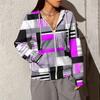 Damenmode Unregelmäßiger Geometrischer Druck Langarm Tasche Locker Reißverschluss Kapuzen-Hoodie Jacke