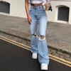 Weitbeinige Jeans, lange Hosen, Löcher, leicht ausgestellt, Streetwear-Stil, hohe Taille, Damenjeans