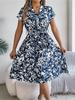Kleid mit V-Ausschnitt, bedrucktem Knopf, taillenbetontes, elegantes, strähniges Selvedge-Kleid für Damen mit Fledermausärmeln, lockere Kleider, lässiges Kleid