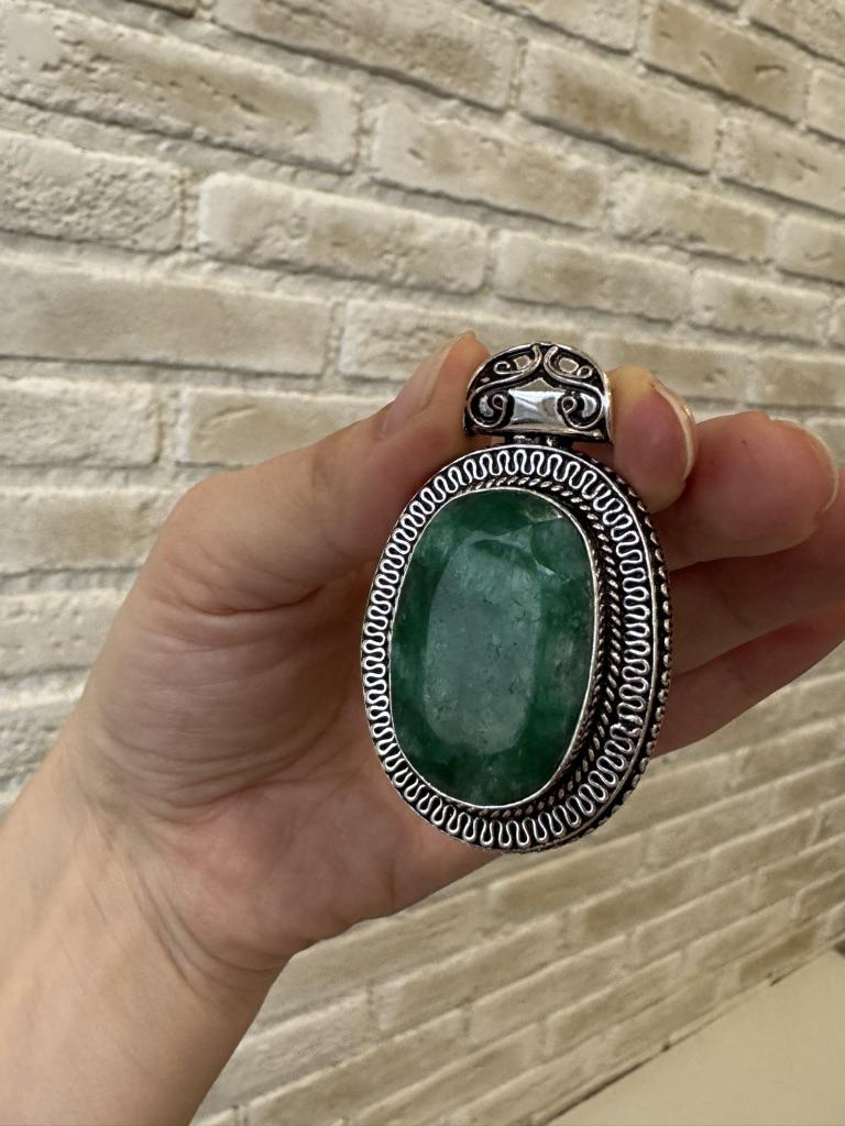 Smaragd Natur 925 Sterling Silber Schmuck Anhänger 2.32 "l3j98