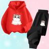 Mädchen Schöne Cartoon Katze Druck Hoodies und Hosen Bekleidungssets Mädchen Anzug Kinder Niedliche Oberteile Outfits für Mädchen Sport Trainingsanzüge