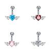Bauchnabelringe mit Engelsflügeln, herzförmiger Zirkonia-Nabelring, niedlicher baumelnder Nabel-Piercing-Schmuck